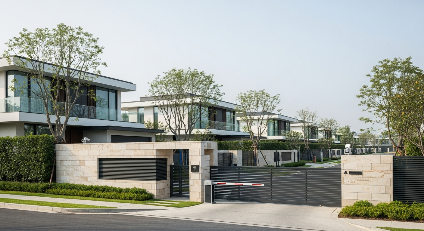 U zajednicama sa kontrolisanim pristupom mogu se naći različite vrste rezidencija, od samostalnih kuća i vila, preko gradskih kuća, do luksuznih stanova. Razvoj nekretnina u ovim naseljima često prati visoke standarde gradnje i dizajna, sa fokusom na kvalitetne materijale i savremene arhitektonske tendencije. Investitori i developeri pažljivo planiraju svaki aspekt, od rasporeda ulica do pejzažnog uređenja, kako bi stvorili koherentno i estetski privlačno okruženje. Ove nekretnine su često pozicionirane kao dugoročna investicija, nudeći stabilnost i potencijal za rast vrednosti zbog svoje atraktivnosti i sigurnosti.